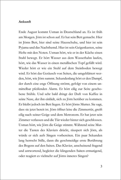 Usman besucht ein Abendgymnasium. Er beginnt, die europäische Kultur und die deutsche Sprache als eine Heimat zu entdecken. Doch auch diese Heimat gerät ins Wanken. Sein Geschichtslehrer zeigt eines Tages einen Schwarzweiß-Film: Ein Bulldozer schiebt die bis auf die Knochen abgemagerten Körper toter Menschen vor sich her. Im Wörterbuch findet er eine Übersetzung für Auschwitz nicht. Er beendet das Studium. Die Perspektive, lebenslang als Chemiker zu arbeiten, ängstigt ihn. In einer Wochenzeitung entdeckt er eine Stellenanzeige. Eine Privatschule mit Internat sucht einen Chemielehrer. Die Schule nennt sich Reformpädagogisch, verspricht eine Erziehung zur Humanität. Über Nacht wird er Pädagoge und Heimerzieher. Die Zusammenarbeit mit Kindern erlebt er als eine Herausforderung. Endlich fühlt er sich in der Welt angekommen. Doch der Schein trügt. Bald entdeckt er, dass die Schulwirklichkeit von Regellosigkeit geprägt ist. Dennoch wähnt er sich in einer wundersamen Welt aufgehoben.